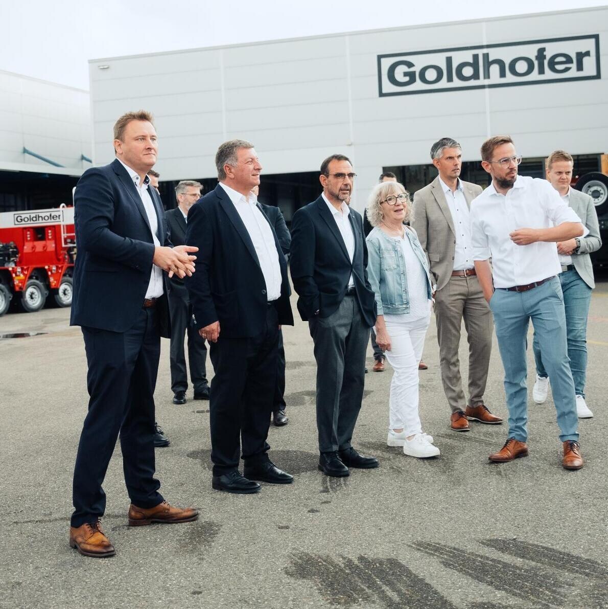 Am Standort der Goldhofer AG in Memmingen empfing das Unternehmen am 17. Juli 2025 hochrangige politische Gäste: Christian Bernreiter, Bayerischer Staatsminister für Wohnen, Bau und Verkehr, Klaus Holetschek - Memminger Landtagsabgeordneter, CSU-Fraktionsvorsitzender im Bayerischen Landtag und früherer Staatsminister für Gesundheit und Pflege. Begleitet wurden sie von Bürgermeisterin Margareta Böckh, die die Stadt Memmingen vertrat. Seitens Goldhofer nahmen unter anderem CEO Matthias Ruppel, CFO Florian Werner, Werkleiter Norbert Berger und Homologationsexperte Volker Schmidt am Austausch teil.