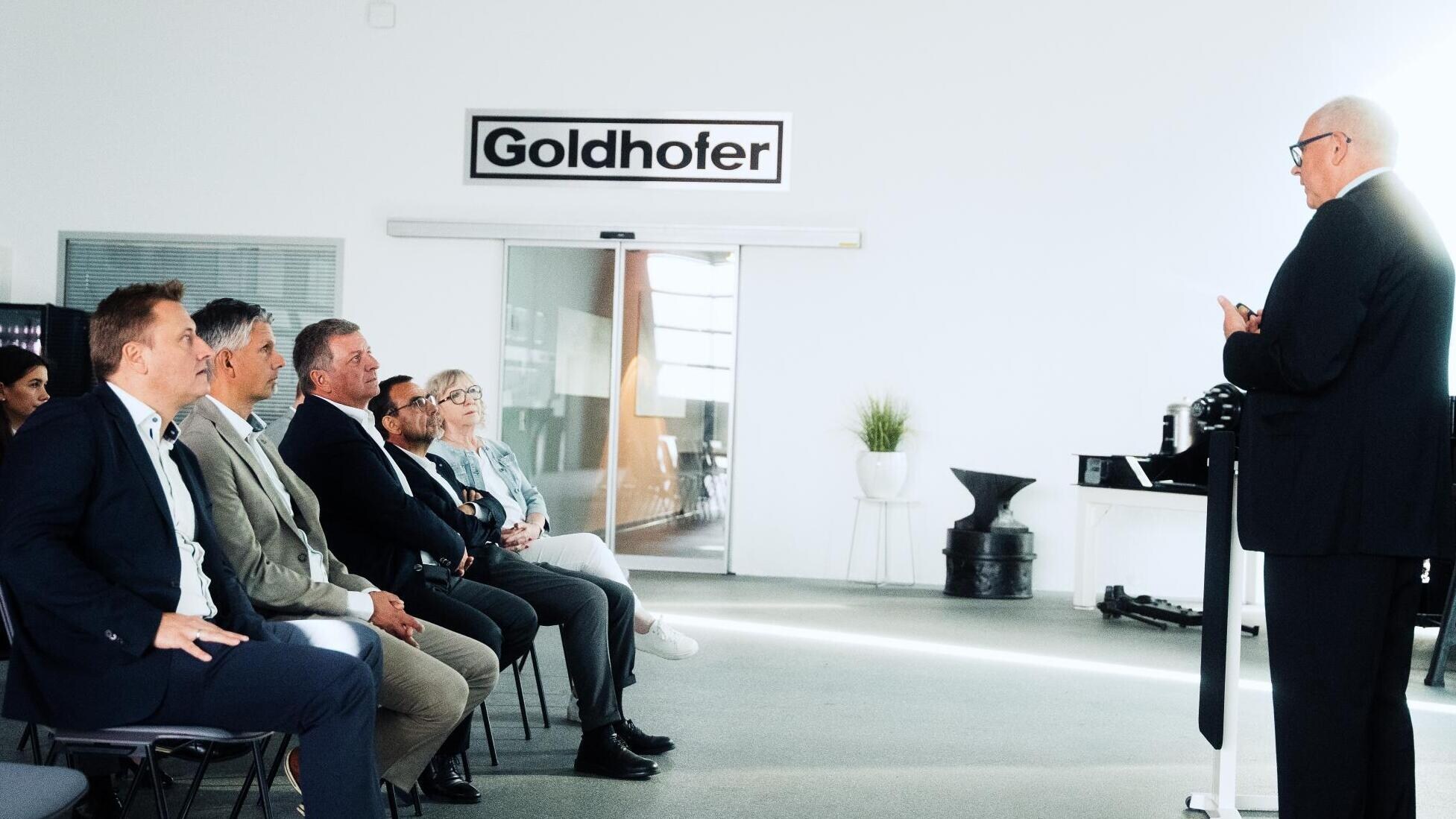 Zu Beginn stellte CEO Matthias Ruppel das Unternehmen vor, das mit rund 1.000 Mitarbeitenden in zwei Geschäftsbereichen tätig ist: Transport Technology und Airport Technology. Goldhofer entwickelt und produziert hochspezialisierte Transportlösungen für Güter, die aufgrund ihrer Größe – sei es Länge, Höhe oder Gewicht – mit herkömmlichen Mitteln nicht mehr bewegt werden können. Die Produkte reichen von Schwerlastmodulen für Transformatoren über Windflügeltransporter bis hin zu innovativen Kabeltrommeltransportern für Stromtrassen. Im Bereich Airport Technology ist Goldhofer unter anderem führend bei stangenlosen Flugzeugschleppern – allen voran der vollelektrische »PHOENIX« E, der selbst Großraumflugzeuge mit einem Abfluggewicht von bis zu 352 Tonnen mit bis zu 32 km/h auf dem Vorfeld bewegen kann.
